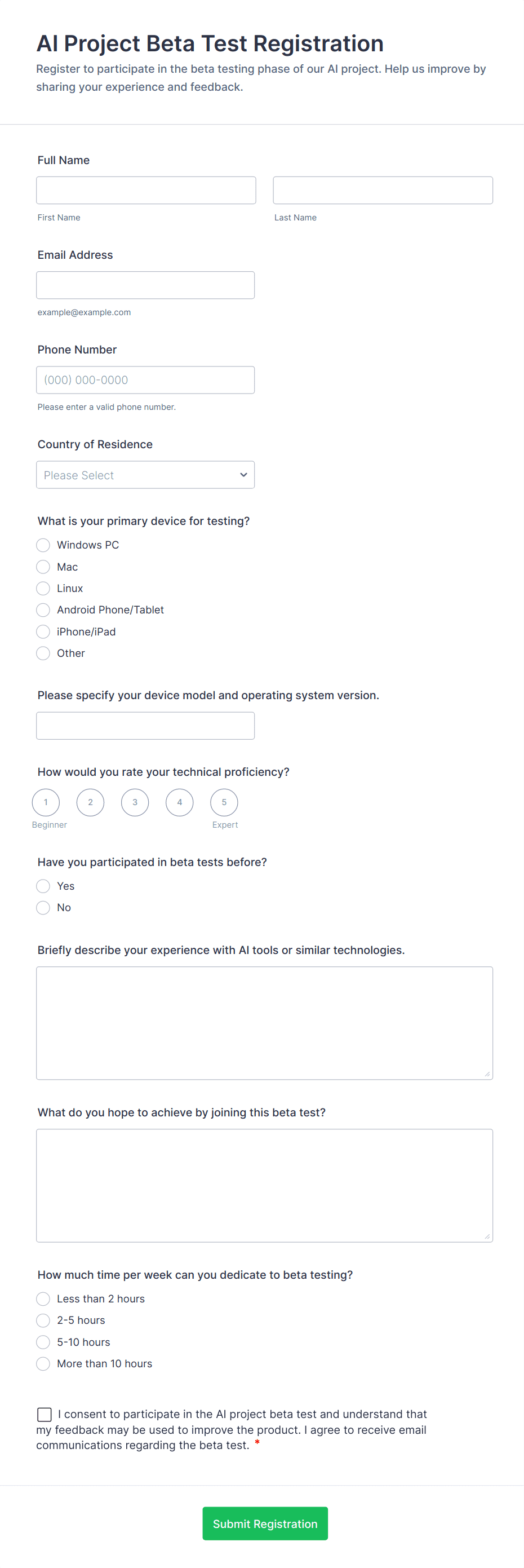 - Newsletter Sign Up: Typically requires only name and email, with optional interest checkboxes.