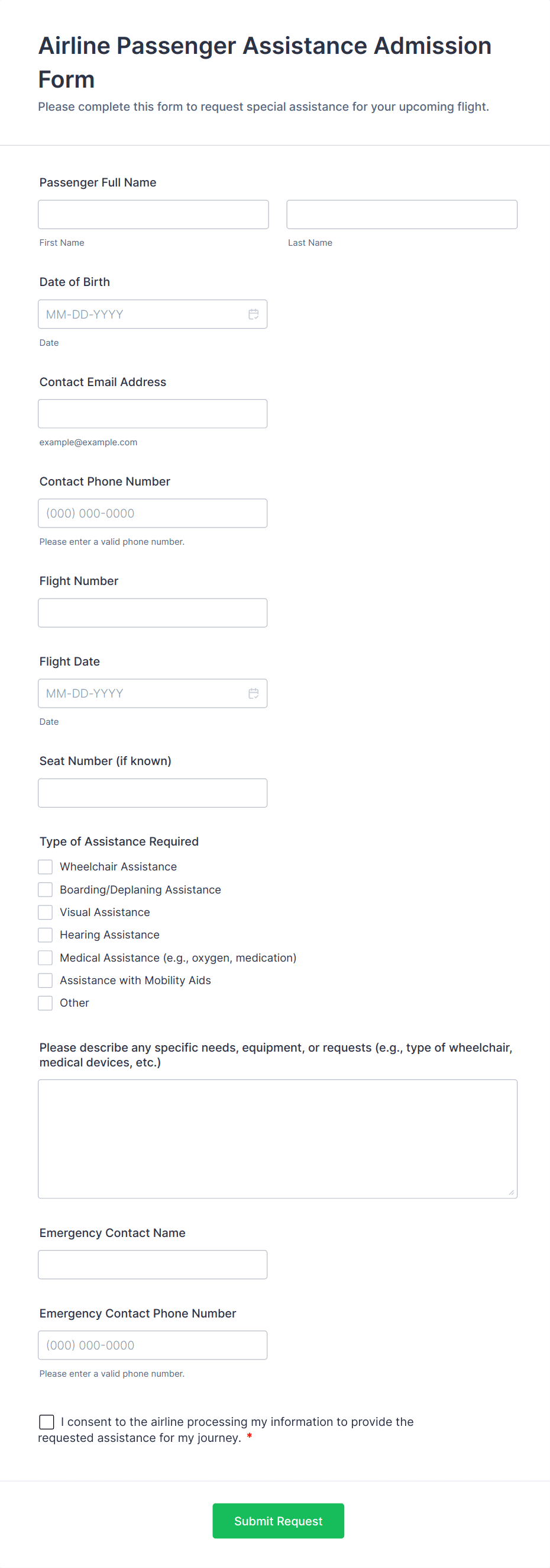- Medical Transport Forms: Need patient details, mobility requirements, insurance info, and preferred vehicle type.