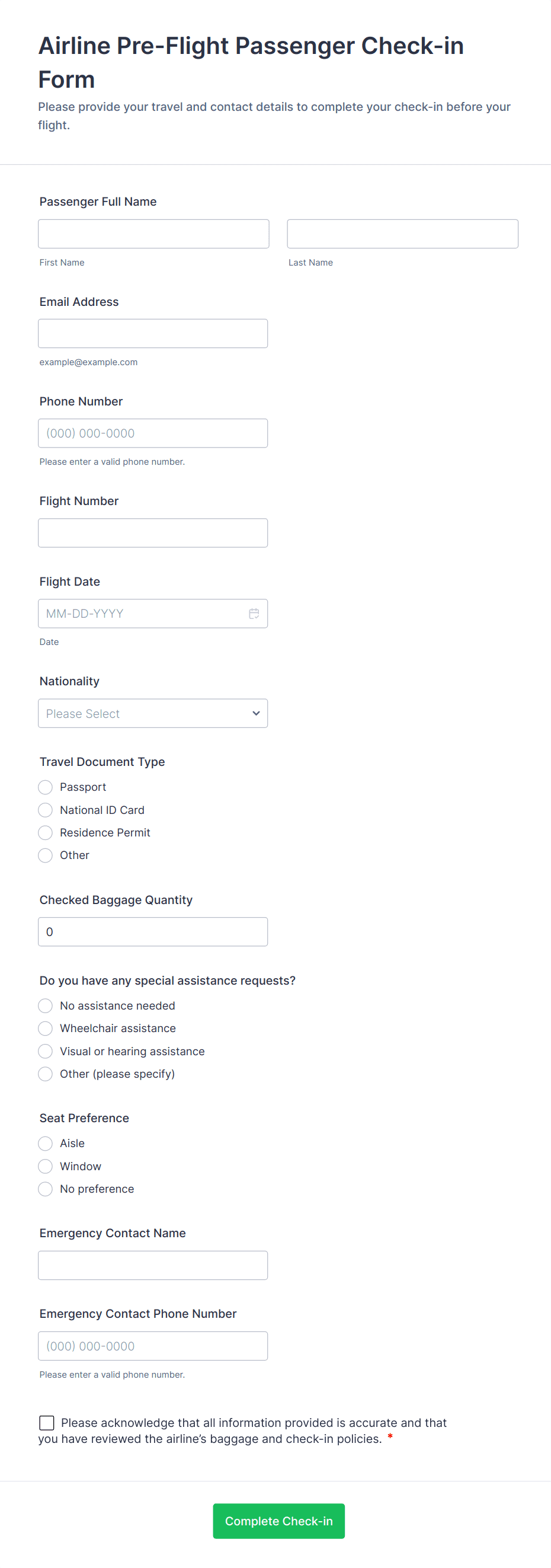 - Basic Fields: Name, email, phone number, date and time of check-in.