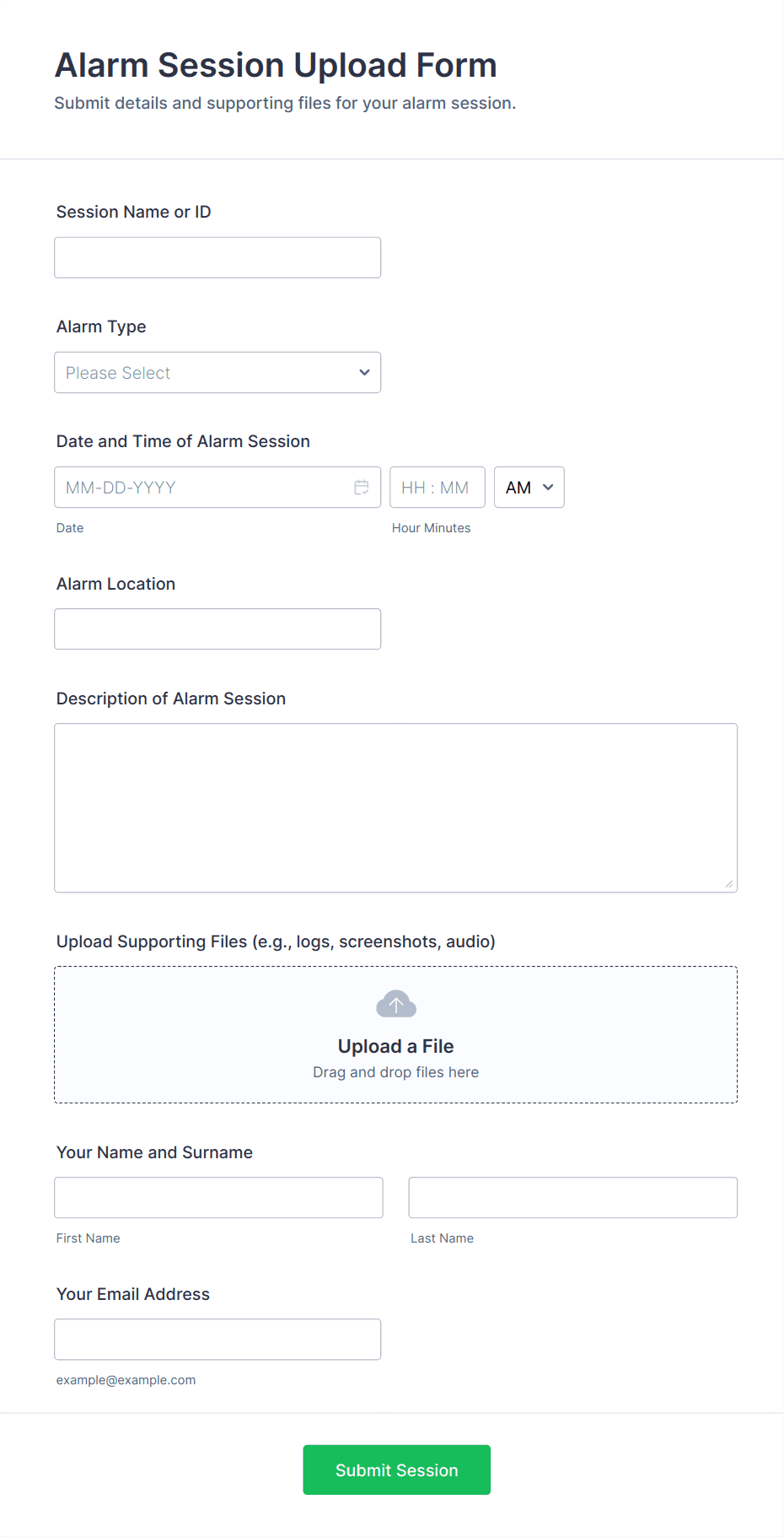 File Upload Forms are specialized online forms designed to collect files, documents, images, or other digital assets directly from users. These forms are commonly used in scenarios where individuals or organizations need to gather supporting materials, such as job applications with resumes, event registrations with ID proofs, homework submissions, design requests, or client onboarding documents. The versatility of File Upload Forms makes them essential for businesses, educational institutions, creative agencies, HR departments, and service providers who require a secure and efficient way to receive files from clients, students, or collaborators.