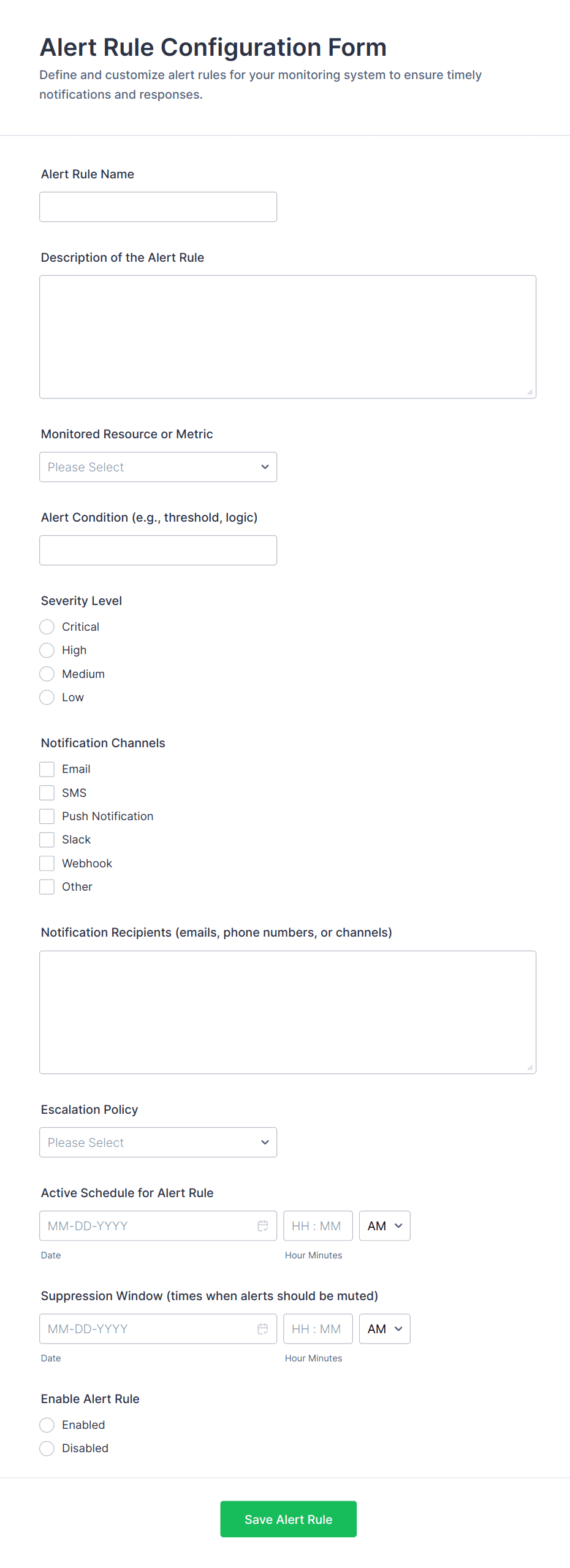 Monitoring Form Templates are versatile tools that can be adapted to a wide range of industries and scenarios. Here’s how they can be used, who benefits from them, and how their structure may vary: