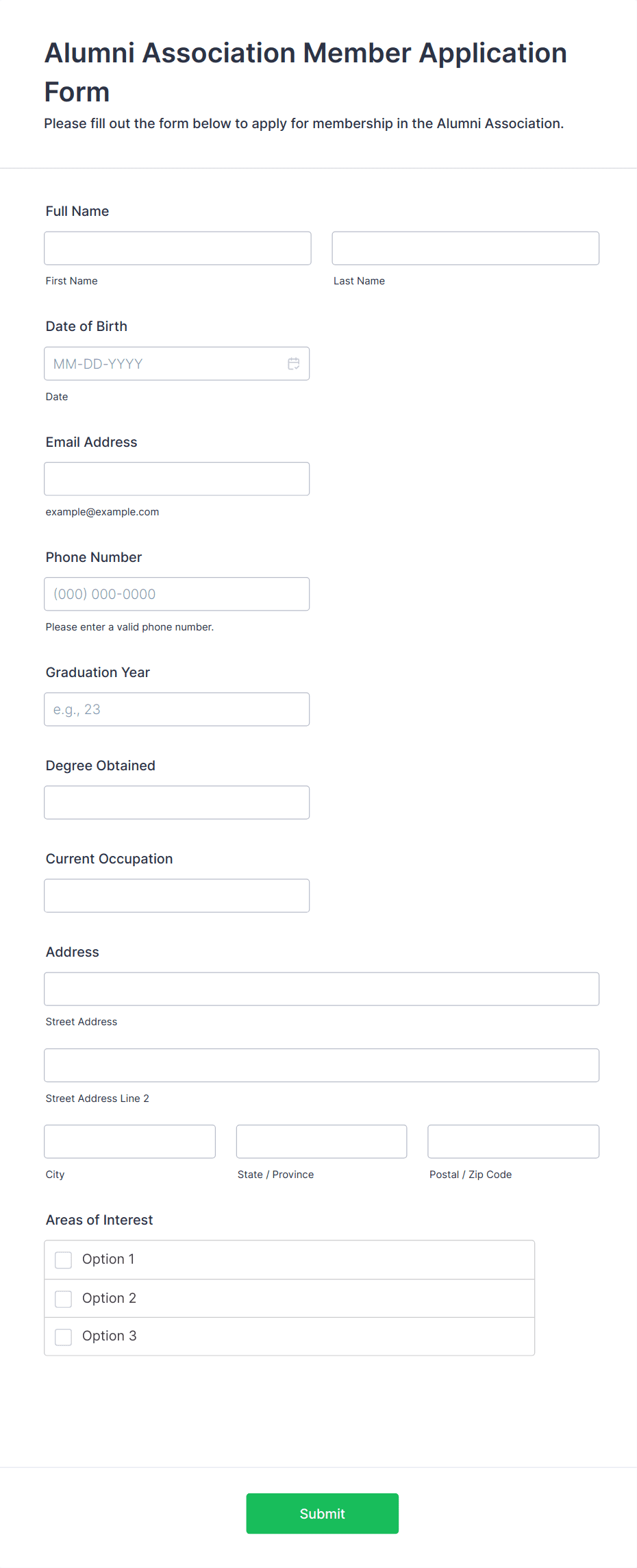 Alumni forms help organizations maintain accurate contact records, facilitate event planning, support fundraising efforts, and foster ongoing engagement with their graduates.