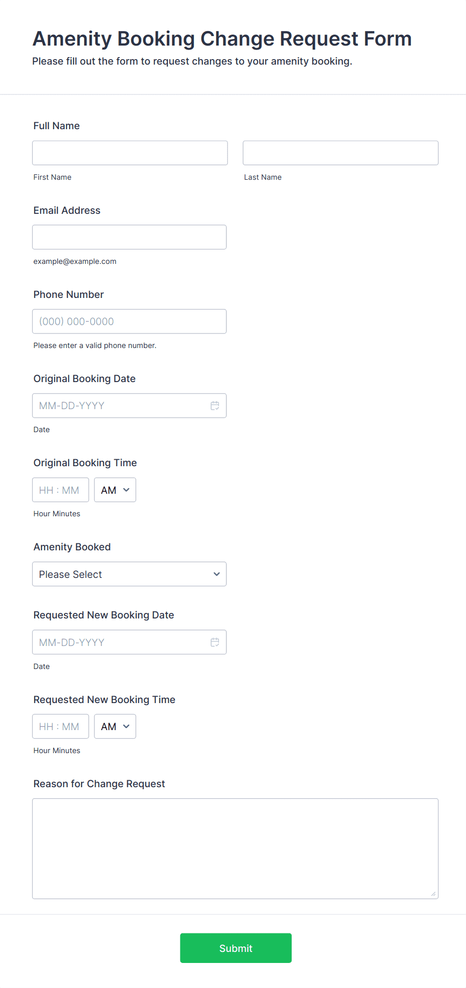 Booking forms are digital tools designed to streamline the process of scheduling appointments, reserving services, or booking resources. They are commonly used across a variety of industries, including hospitality, healthcare, education, event management, and personal services. Whether you’re managing hotel room reservations, client appointments, event registrations, or equipment rentals, booking forms help automate the intake of essential information, reduce manual errors, and ensure a smooth experience for both service providers and customers. Typical use cases include booking consultations, reserving meeting rooms, scheduling classes, or securing tickets for events.
