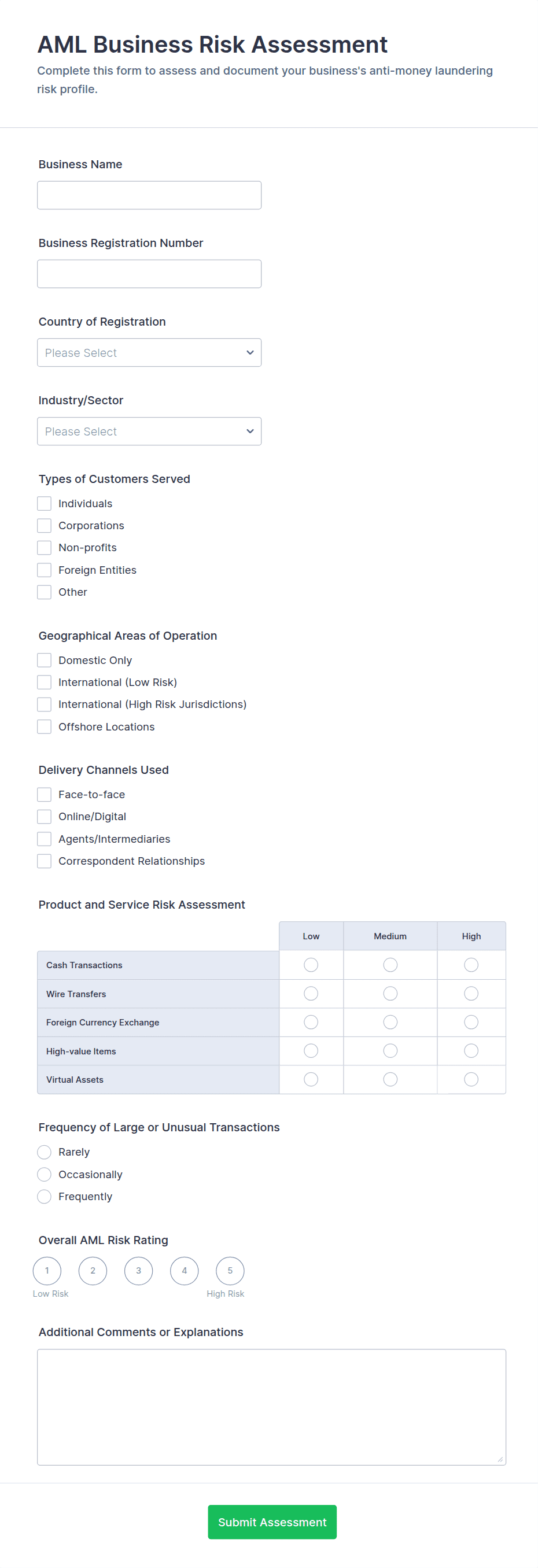 Assessment Form Templates are pre-designed digital forms used to evaluate, measure, or analyze knowledge, skills, performance, or other criteria across a variety of settings. These templates are commonly utilized in education for student assessments, in the workplace for employee evaluations, in healthcare for patient screenings, and in many other fields where structured feedback or data collection is essential. Assessment forms can range from simple quizzes and self-assessments to complex multi-section evaluations, making them versatile tools for gathering actionable insights and supporting decision-making processes.