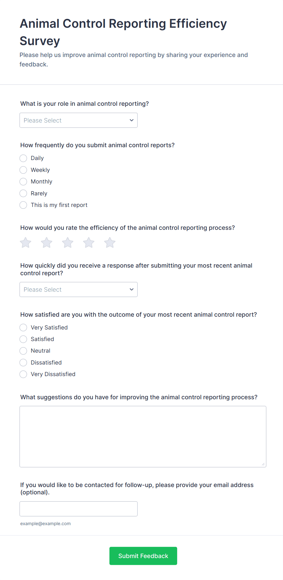 Feedback surveys are structured tools designed to collect opinions, insights, and evaluations from individuals about a product, service, event, or experience. Organizations, businesses, educators, and event planners use feedback surveys to gauge satisfaction, identify areas for improvement, and make data-driven decisions. These surveys can be tailored for a variety of scenarios, such as post-purchase feedback, employee engagement, course evaluations, customer service assessments, and event follow-ups. By gathering direct input from stakeholders, feedback surveys help organizations understand what’s working well and where changes are needed.