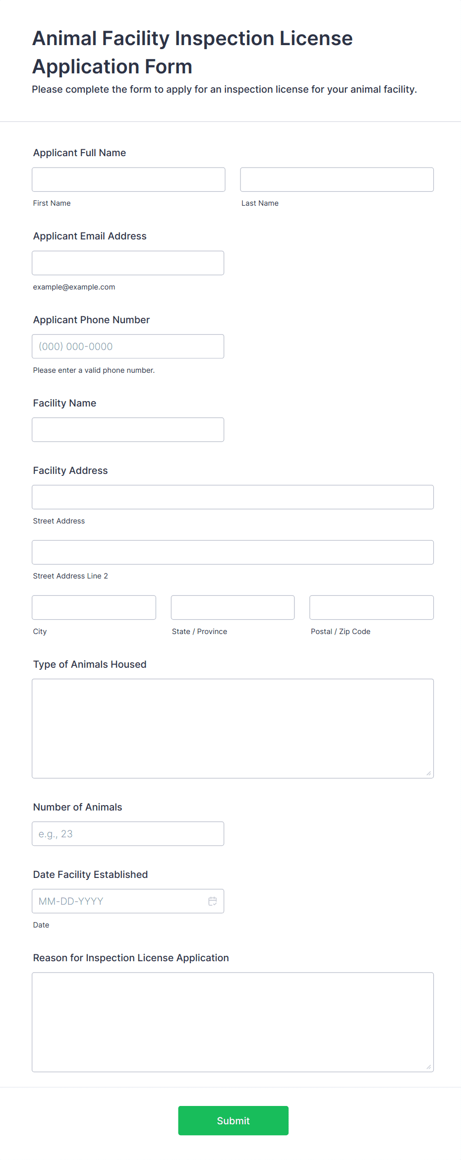 • For job applications, include fields for personal information, education, work experience, references, and file uploads for resumes or cover letters.