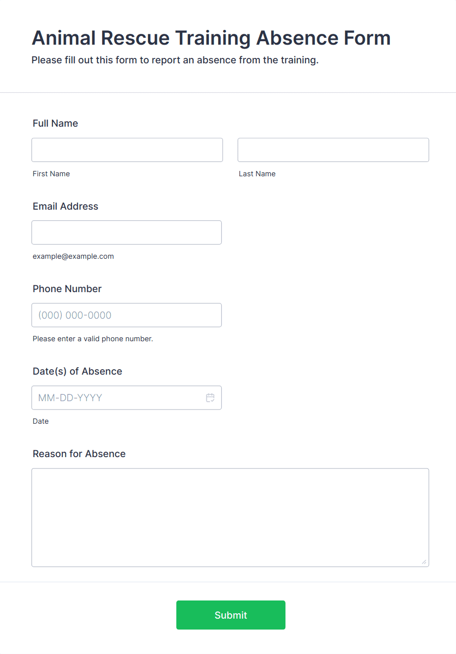 • Animal Surrender Forms: Allow individuals to provide background information about animals they can no longer care for, ensuring a smooth intake process.