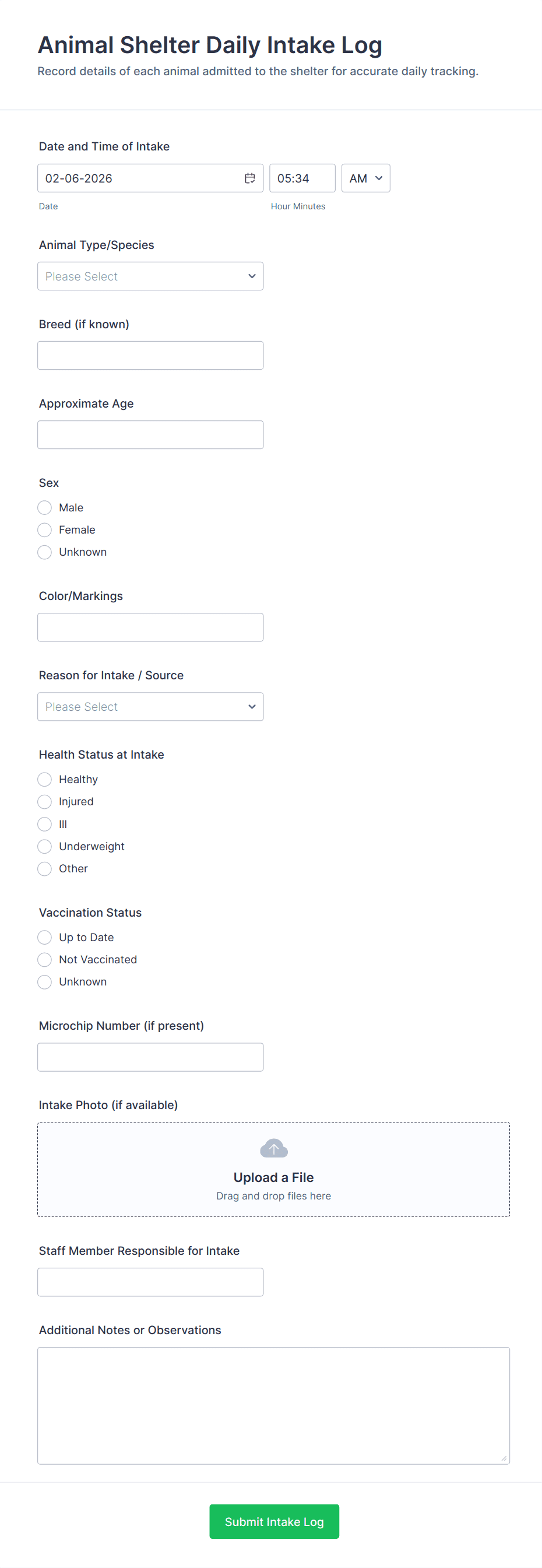 These forms streamline data collection, reduce paperwork, and ensure that shelters have accurate, organized records for adoptions, volunteers, donations, and animal care.