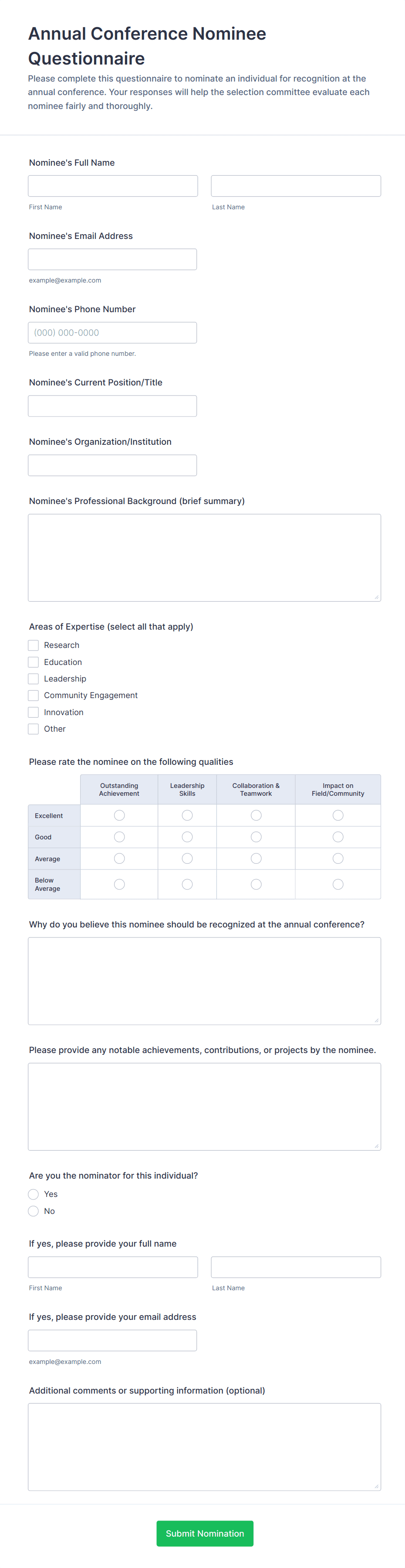 Show different questions based on nomination category or role type. This keeps the form focused and relevant.