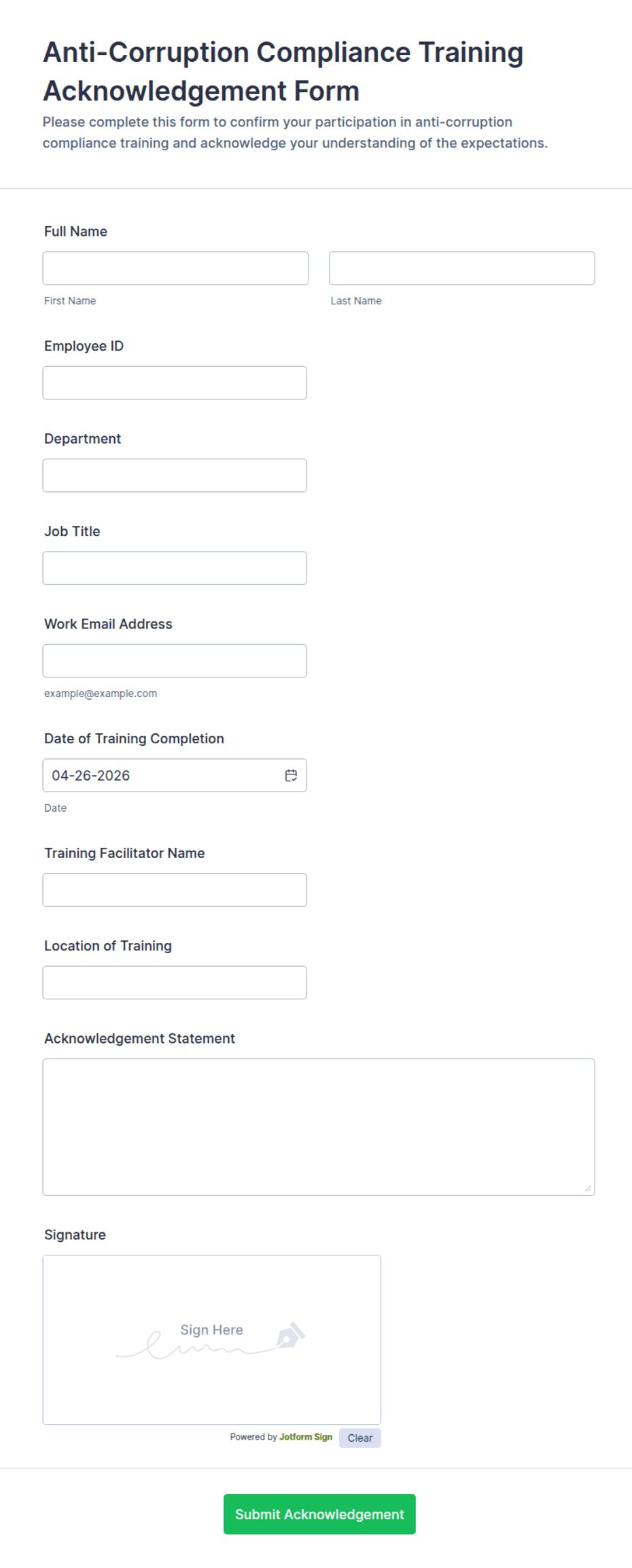 Training forms are specialized digital documents designed to streamline the process of organizing, managing, and evaluating training programs. These forms can be used for a variety of purposes, such as employee onboarding, skills assessments, training feedback, course registrations, pre-training surveys, and post-training evaluations. Organizations of all sizes — from corporate HR departments to educational institutions and training consultants — rely on training forms to collect essential information, track participant progress, and ensure that learning objectives are met efficiently.