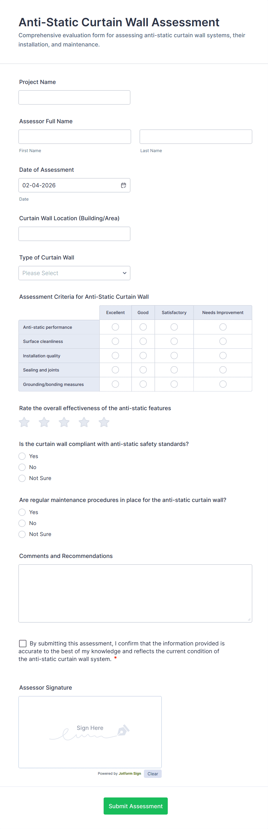 Lead Acid Battery Safety Assessment Form Templates by Jotform help safety teams document battery storage and handling inspections, track training readiness, and centralize data collection across facilities with reliable form submission records.