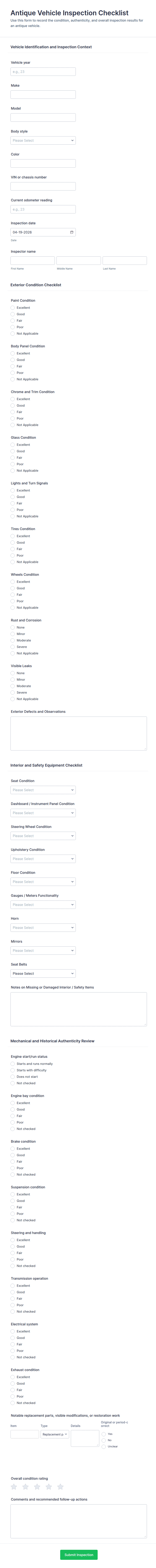 - For pre-purchase inspections, add detailed mechanical and cosmetic checklists.