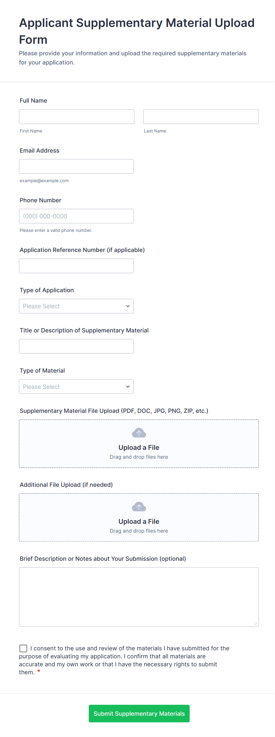 In addition to files, these forms can collect personal details, project information, comments, and any other data relevant to the submission.