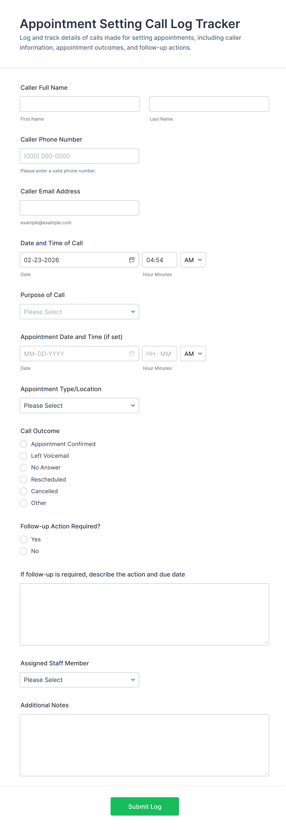 Client Call Log