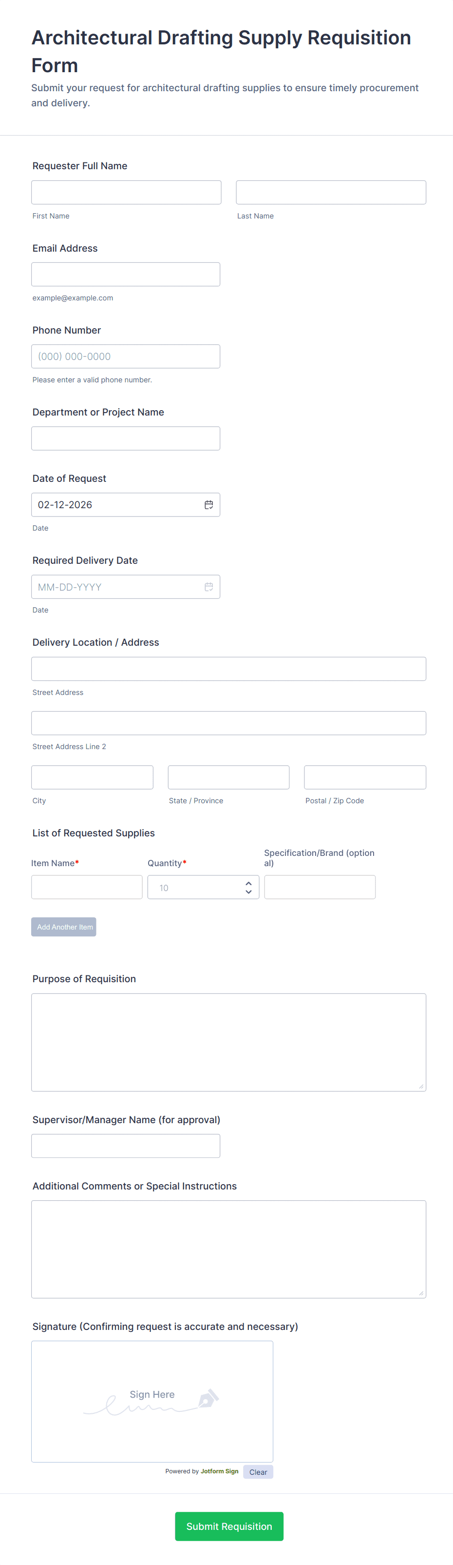 Creating a supply order form with Jotform is a straightforward process that can be tailored to your organization’s specific needs. Whether you’re managing office supplies, medical equipment, or event materials, Jotform’s flexible platform allows you to design forms that streamline procurement and improve record-keeping.