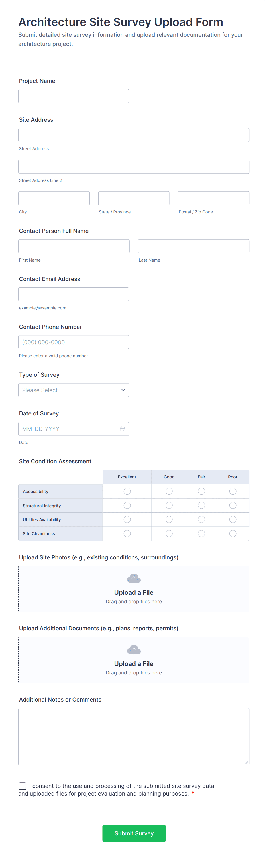 In addition to files, these forms can collect personal details, project information, comments, and any other data relevant to the submission.