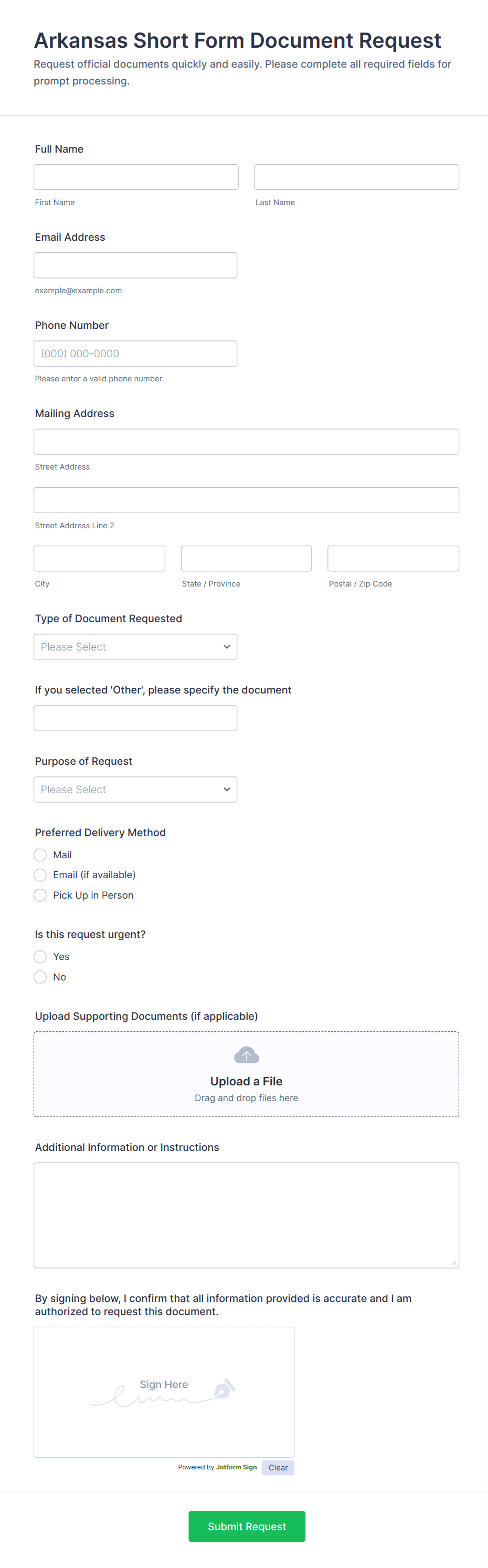 Information request forms are digital tools designed to collect specific details from individuals or organizations for a variety of purposes. These forms are commonly used by businesses, educational institutions, healthcare providers, government agencies, and nonprofits to gather essential information such as contact details, service inquiries, feedback, or documentation requests. Whether you need to process customer queries, handle support tickets, collect research data, or manage internal requests, information request forms streamline the process by providing a structured and efficient way to capture and organize incoming data.