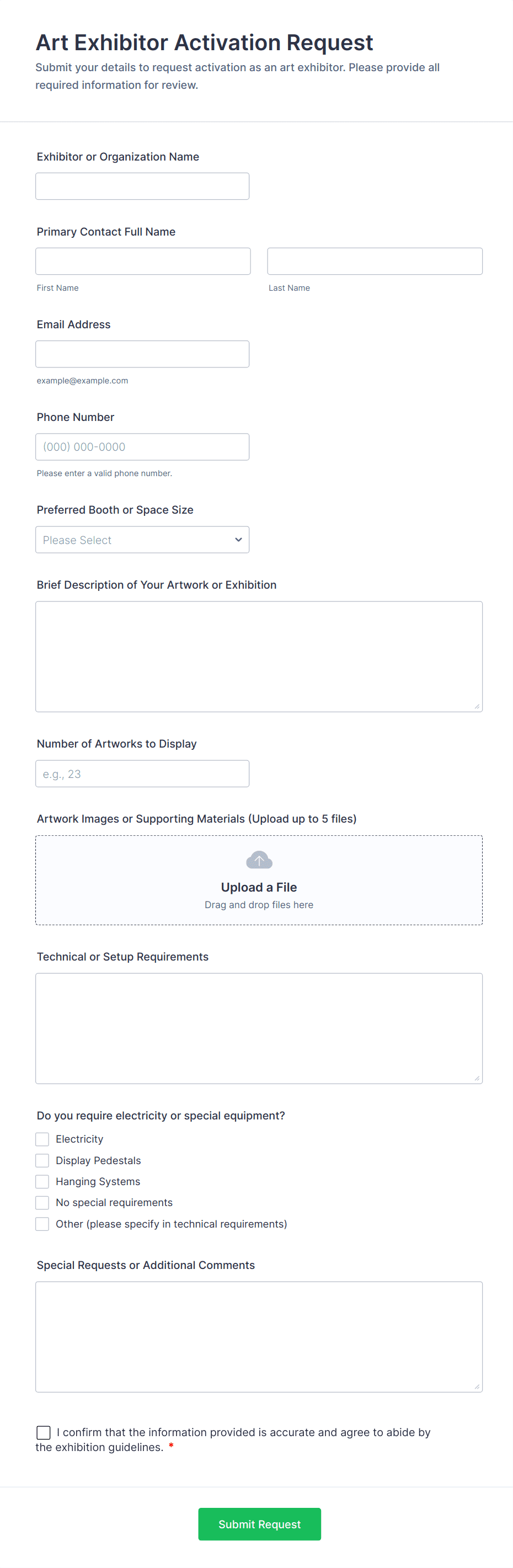 Event request forms are structured documents used to submit, review, and manage requests to plan or host an event. They help organizers collect consistent details like event purpose, dates, location needs, audience size, budget, and required services so events can be approved and coordinated efficiently. Event request forms are commonly used by companies, schools, nonprofits, venues, and community organizations for internal events, workshops, trainings, celebrations, marketing events, and public programs. By standardizing event requests, these forms reduce back-and-forth, improve planning accuracy, and create a clear record of event requirements from the start.