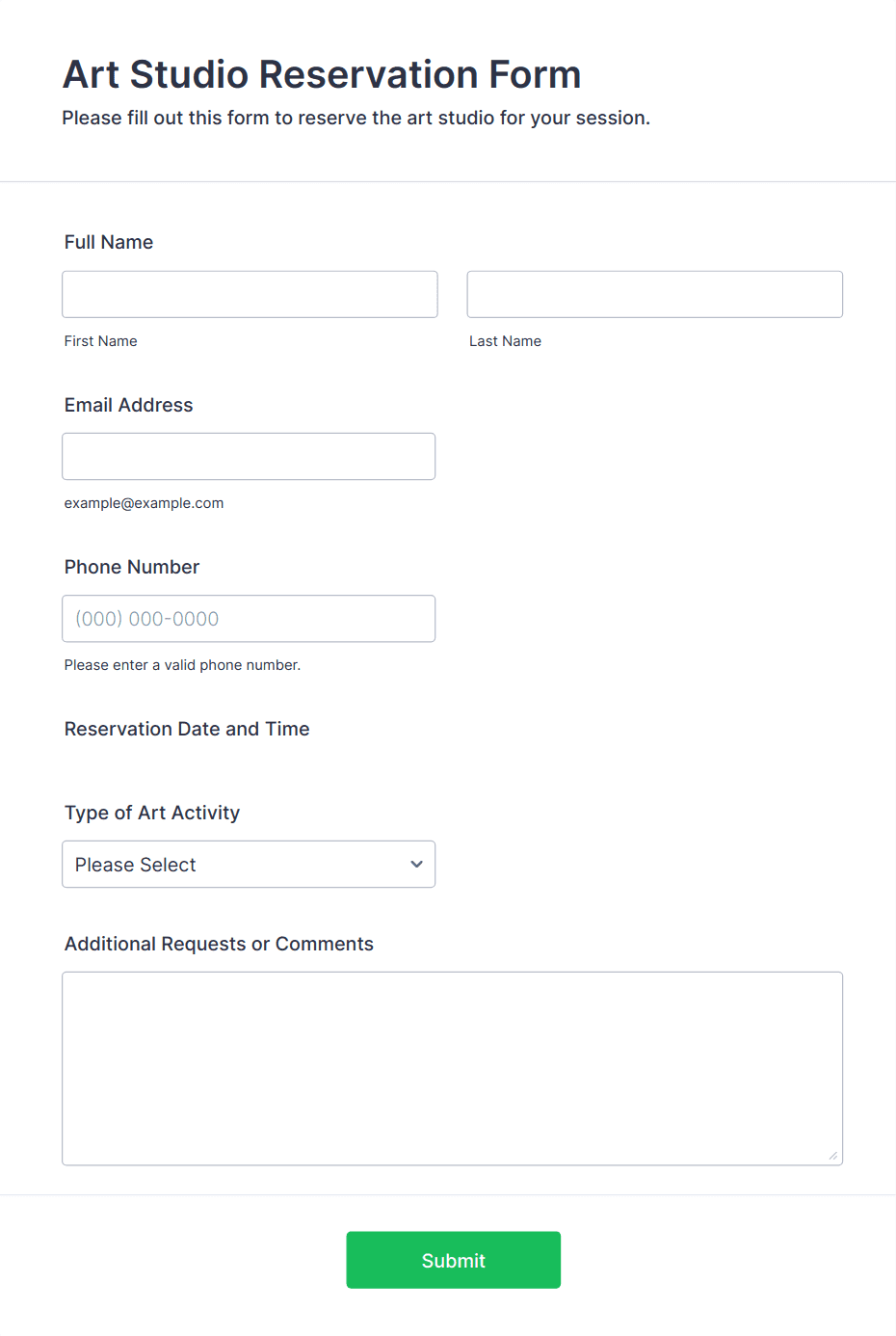 Booking forms are digital tools designed to streamline the process of scheduling appointments, reserving services, or booking resources. They are commonly used across a variety of industries, including hospitality, healthcare, education, event management, and personal services. Whether you’re managing hotel room reservations, client appointments, event registrations, or equipment rentals, booking forms help automate the intake of essential information, reduce manual errors, and ensure a smooth experience for both service providers and customers. Typical use cases include booking consultations, reserving meeting rooms, scheduling classes, or securing tickets for events.