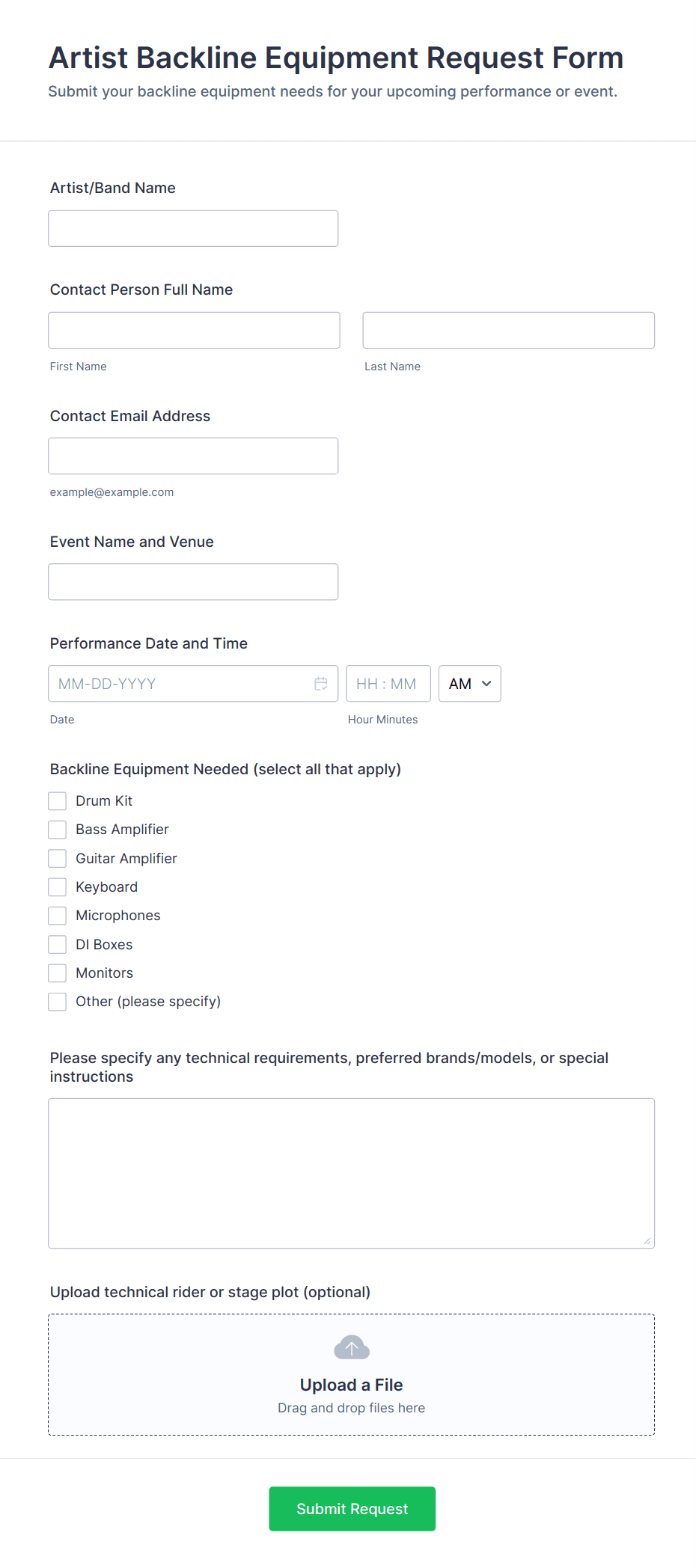Use the Music and Video Package Request Form from Jotform to collect event details, package selections, and client preferences with a drag-and-drop interface and no-code form builder for streamlined data collection.