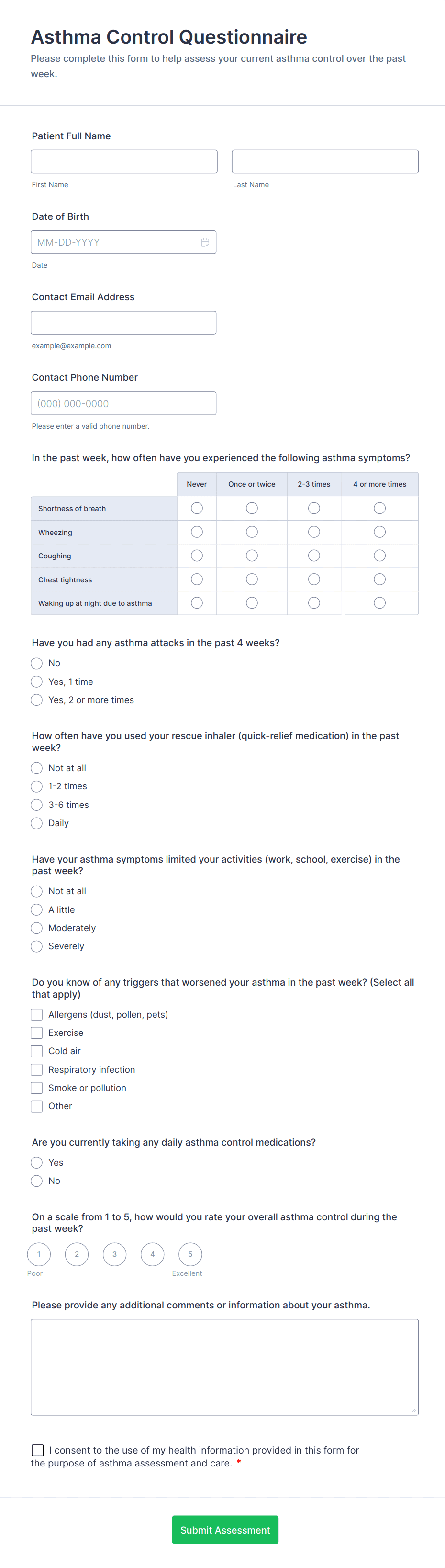 • For health risk assessments, include checkboxes or multiple-choice questions about lifestyle, family history, and specific risk factors.