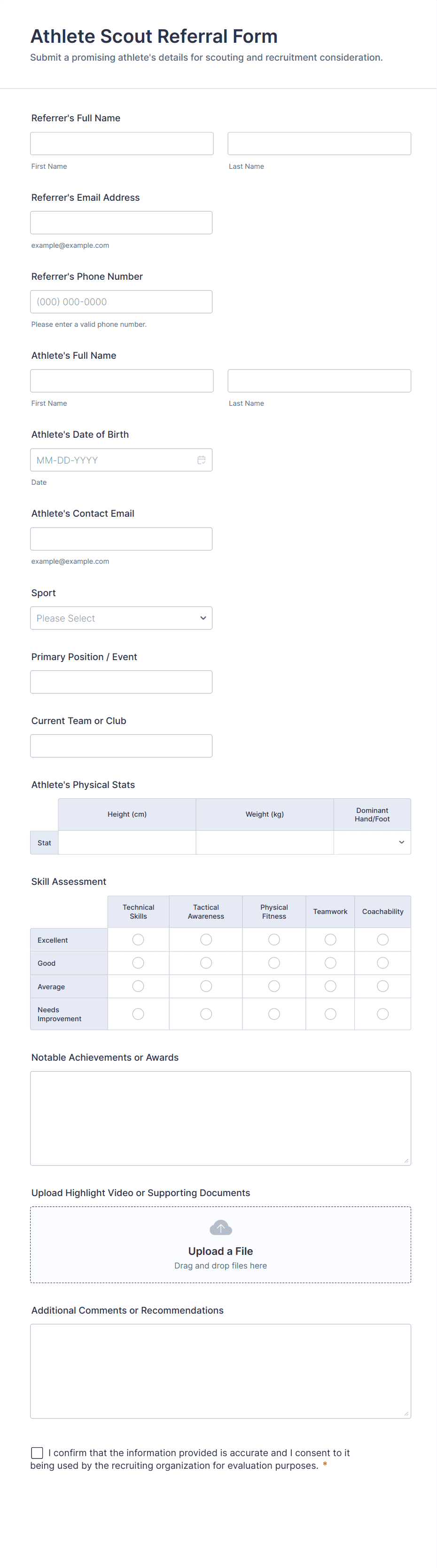 • For healthcare or sensitive referrals, include fields for privacy agreements or HIPAA compliance.