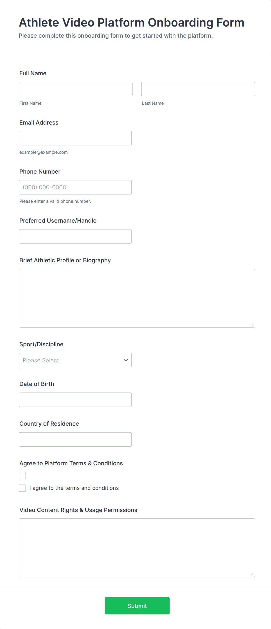 Onboarding Form Templates are specialized digital forms designed to streamline the process of integrating new employees, clients, students, or members into an organization or program. These templates help collect essential information, set expectations, and ensure a smooth transition for newcomers. Common use cases include employee onboarding, client intake, volunteer registration, student enrollment, and vendor onboarding. By standardizing the onboarding process, these forms help organizations gather necessary data, provide important resources, and establish clear communication from the very beginning.