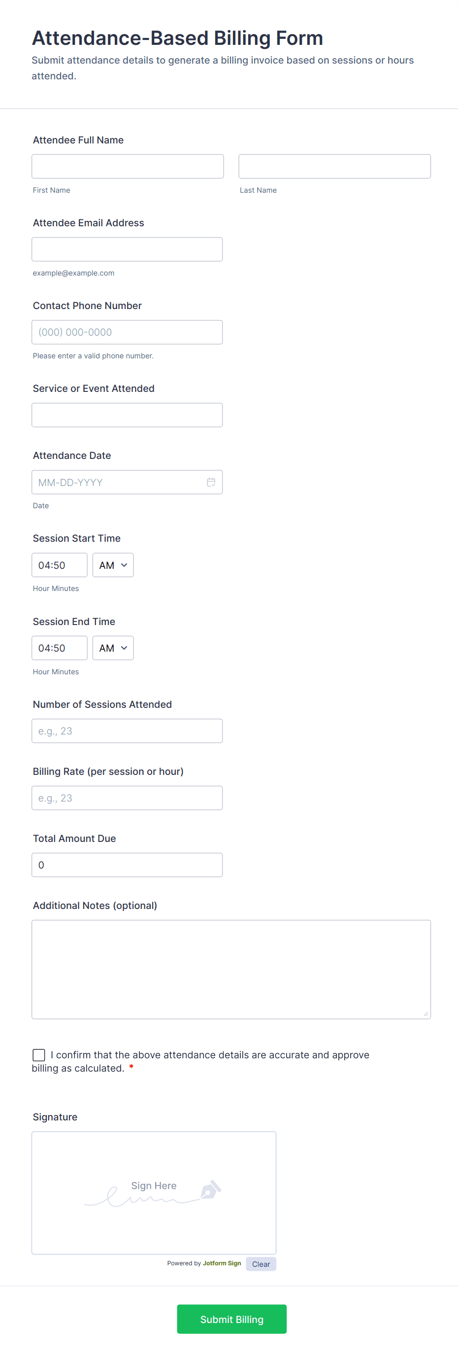 - Service booking forms may require date/time pickers and service selection alongside payment.