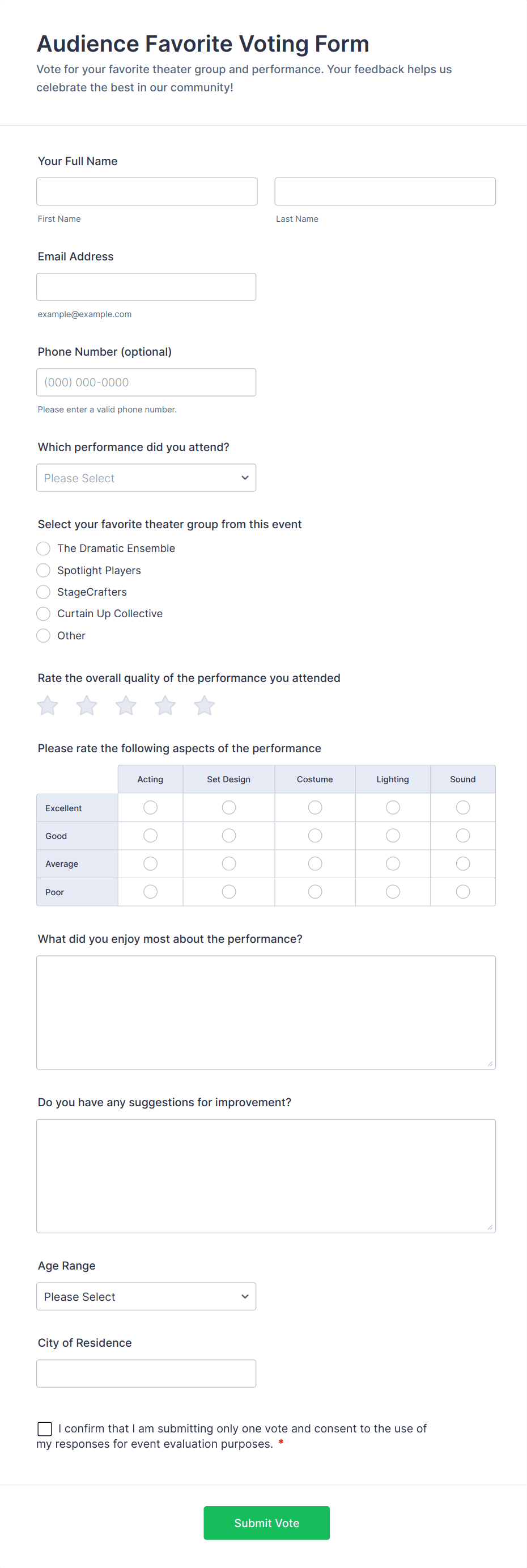 By following these steps, you can create a tailored voting form that meets your specific needs, ensures data integrity, and provides a seamless experience for all participants.