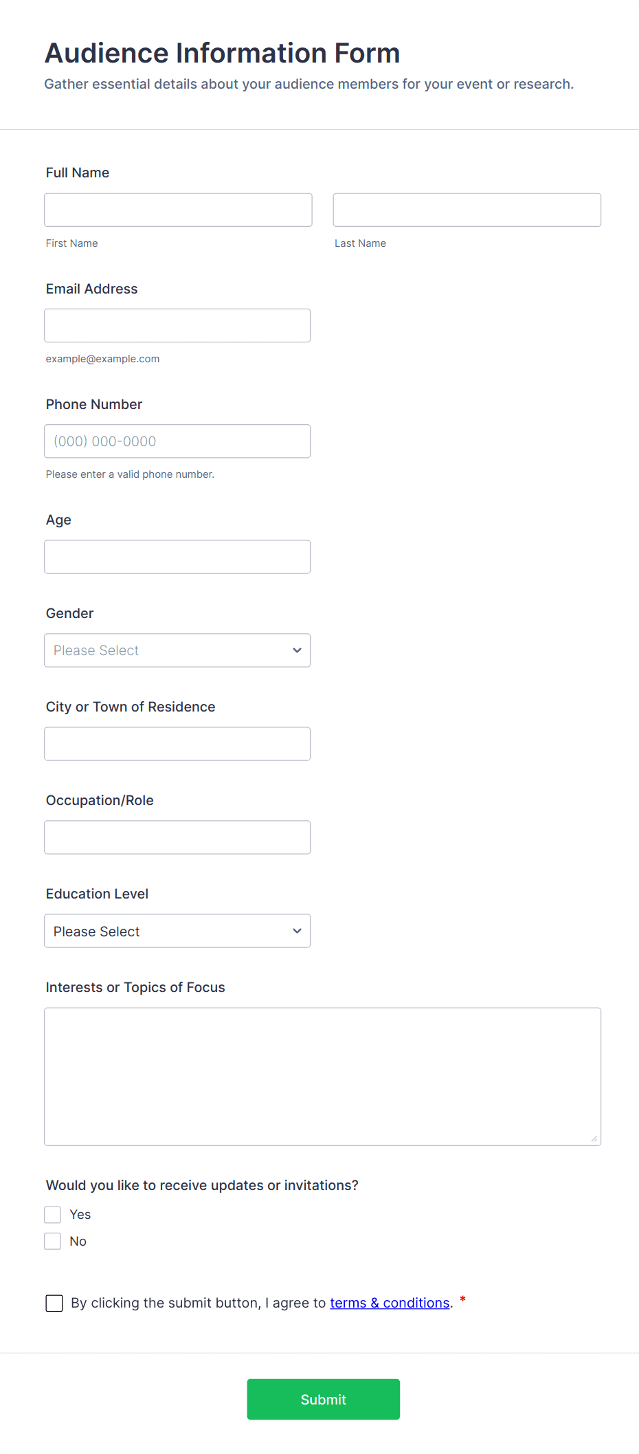 - Event registration and attendee information forms