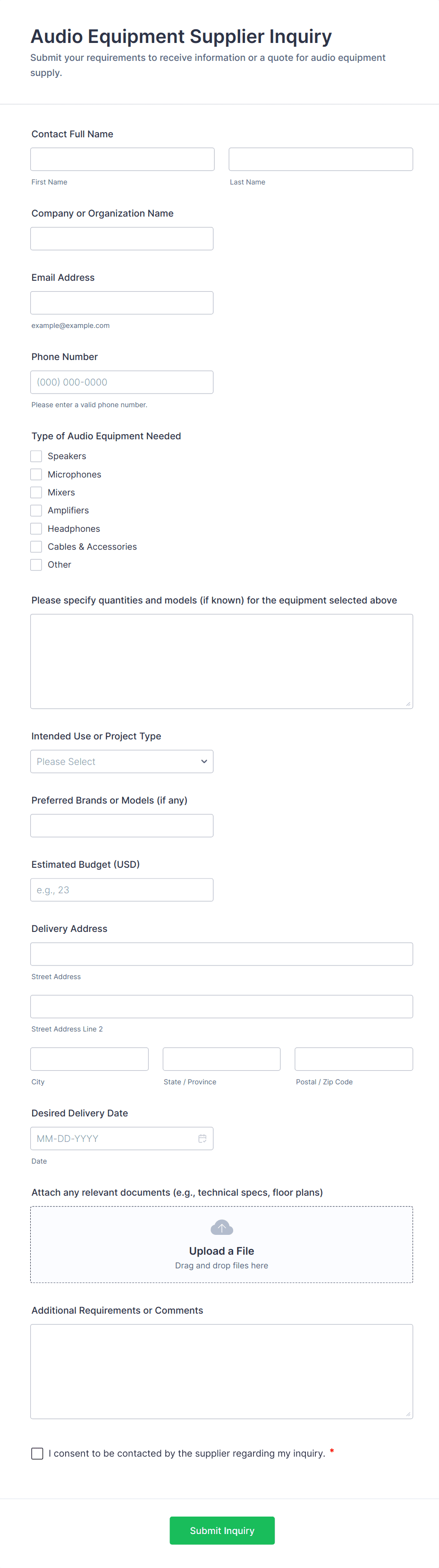 Inquiry Form Templates are versatile tools that can be adapted to a wide range of scenarios, helping organizations efficiently collect and manage incoming questions or requests. Here’s how they can be used, who can benefit, and how their structure may vary: