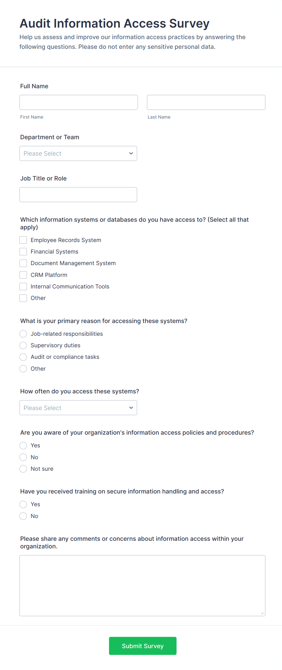Jotform ensures that all form submissions are securely stored and can be accessed only by authorized users. Additional privacy features, such as encryption and access controls, help protect sensitive audit data.