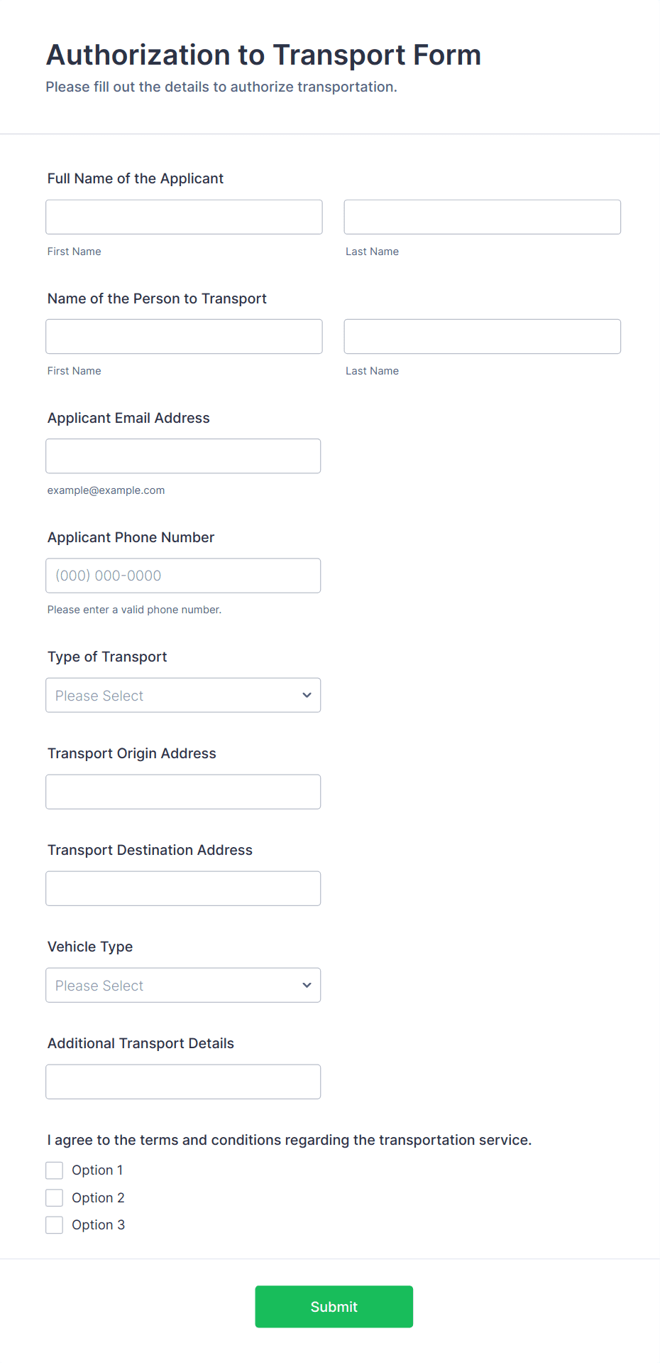 • Medical Transport Forms: Need patient details, mobility requirements, insurance info, and preferred vehicle type.