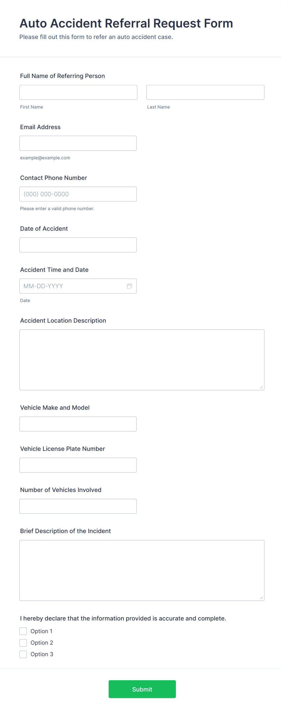 • For healthcare or sensitive referrals, include fields for privacy agreements or HIPAA compliance.