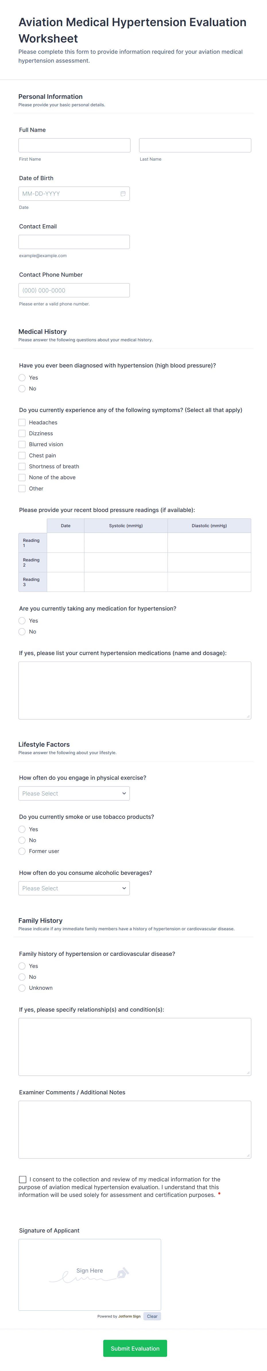 Health Evaluation Form