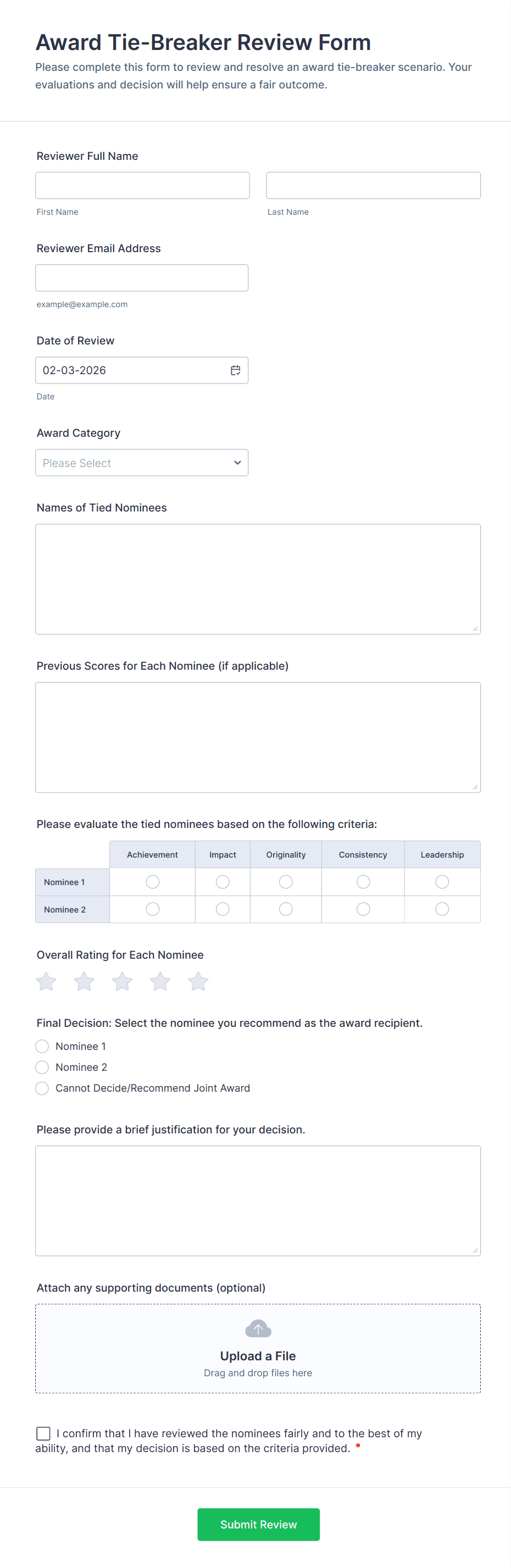 By following these steps, you can create a professional, user-friendly award form that simplifies the nomination and selection process, ensures fairness, and enhances the overall experience for all participants.