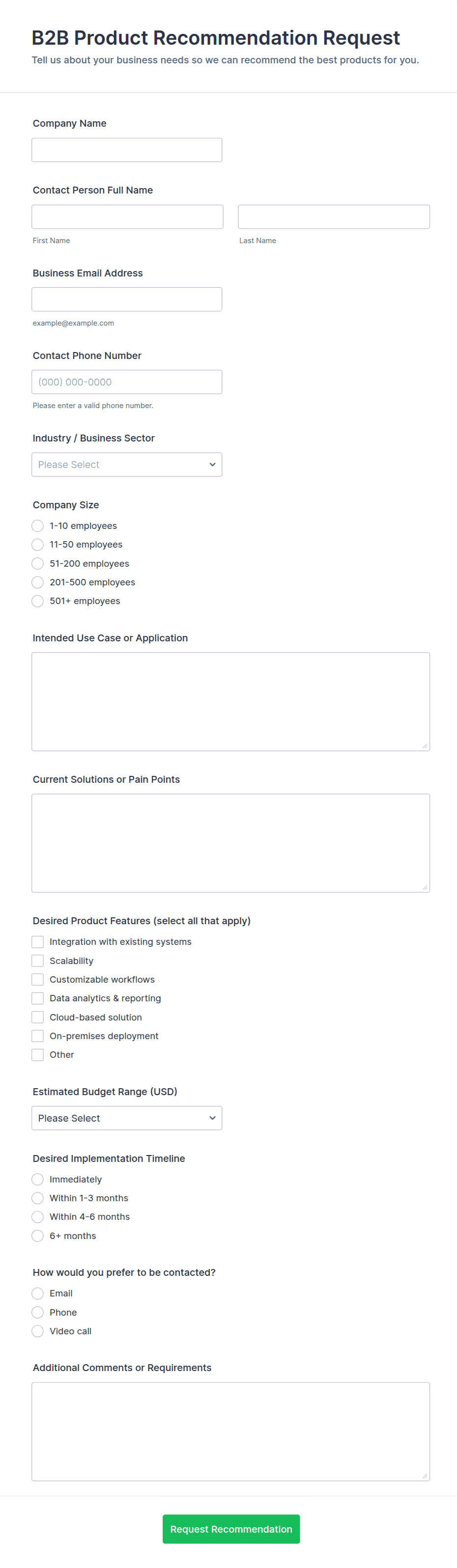 - For more advanced lead qualification, include dropdowns, multiple choice questions, or short/long text fields for specific needs (e.g., budget, project details, industry).