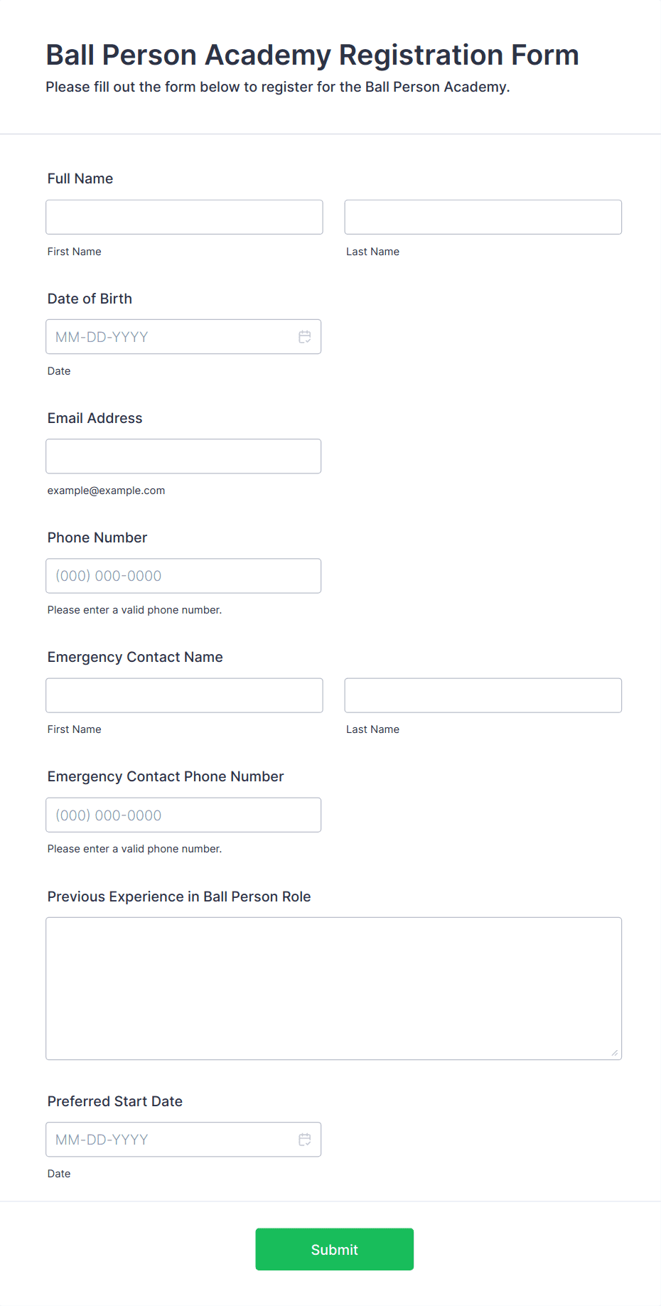 Event Registration Forms are digital tools designed to streamline the process of collecting attendee information for a wide variety of events, such as conferences, workshops, webinars, fundraisers, classes, and social gatherings. These forms allow organizers to gather essential details like participant names, contact information, payment preferences, dietary restrictions, and session selections. By using event registration forms, event planners can efficiently manage RSVPs, track attendance, and ensure a smooth check-in process on the day of the event. The flexibility of these forms makes them suitable for both small private gatherings and large-scale public events, adapting to the unique requirements of each occasion.