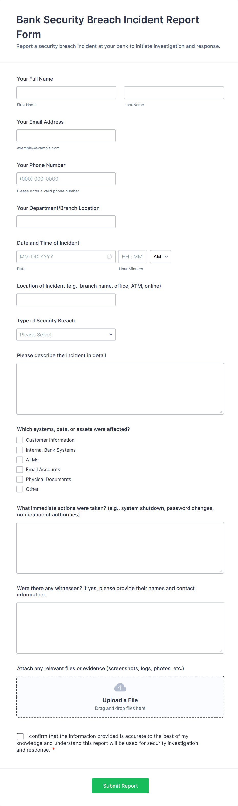 3. What information should be included in an incident report form?