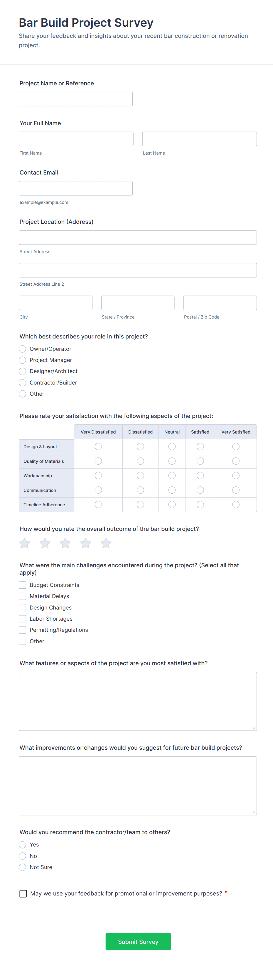 Collect construction project requests from clients online. Easy-to-customize online form. Embed in your website or share with a link. Sync with 100+ popular apps.