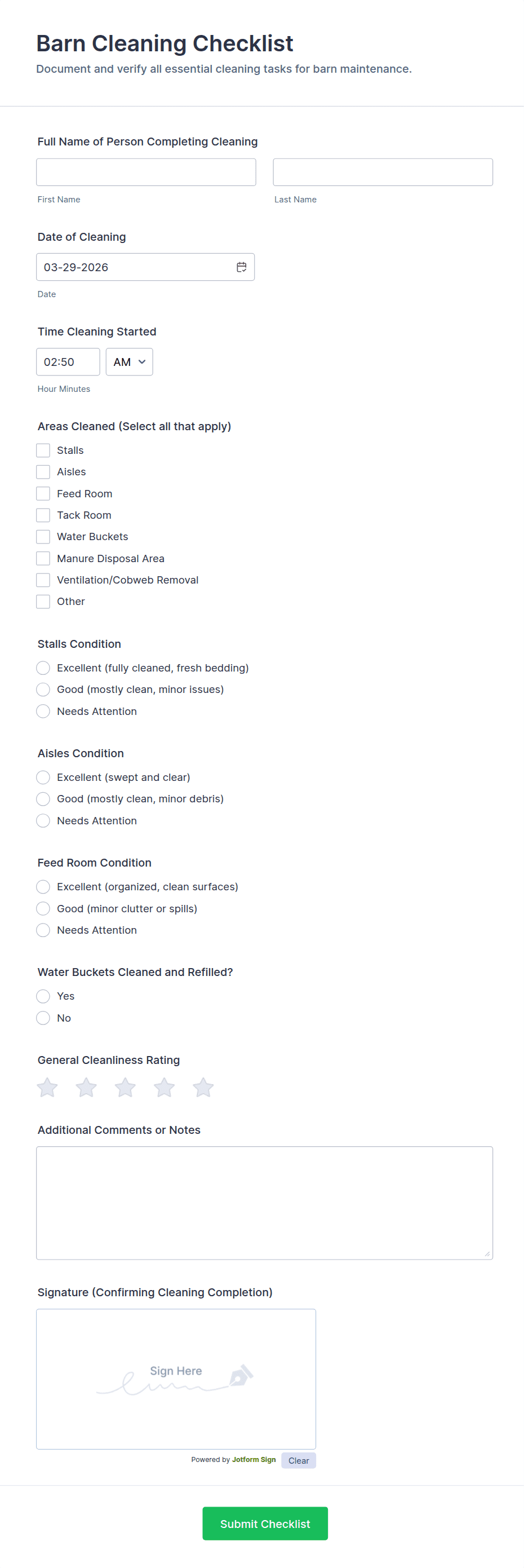 By following these steps, you can create a checklist form that streamlines your processes, ensures consistency, and provides valuable documentation for compliance or reporting. Jotform’s flexibility allows you to adapt your checklist forms as your needs evolve, making it a powerful tool for ongoing task management.