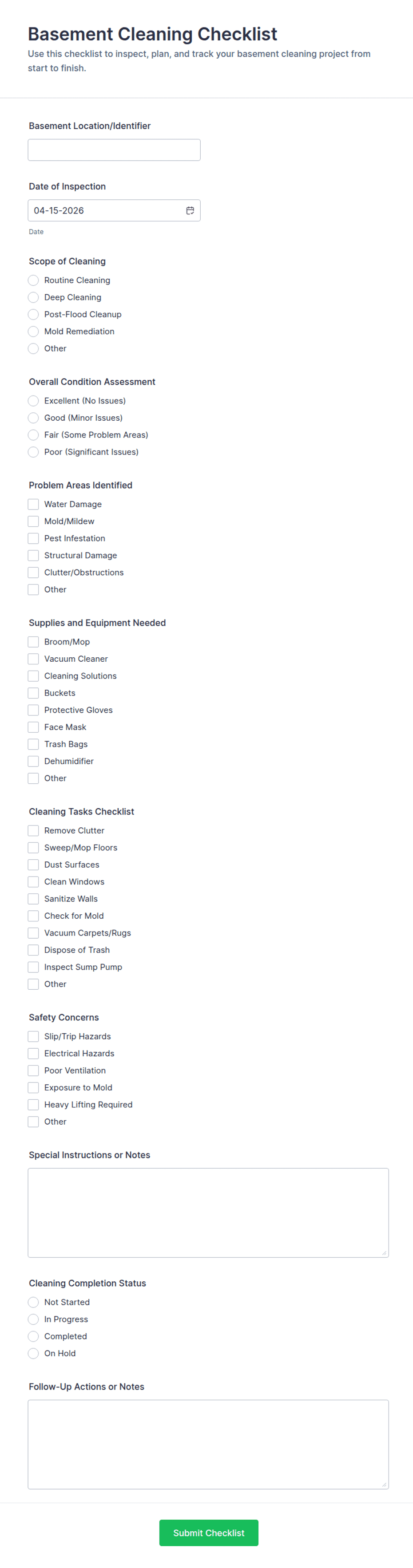 Cleaning Forms are specialized digital forms designed to streamline and organize the processes involved in cleaning services, facility maintenance, and janitorial operations. These forms can be used for a variety of purposes, such as scheduling cleaning appointments, conducting cleaning inspections, tracking supply usage, logging completed tasks, and collecting client feedback. Whether you manage a commercial cleaning company, oversee in-house custodial teams, or offer residential cleaning services, Cleaning Forms help ensure that all tasks are documented, standards are met, and communication between staff and clients remains clear and efficient.