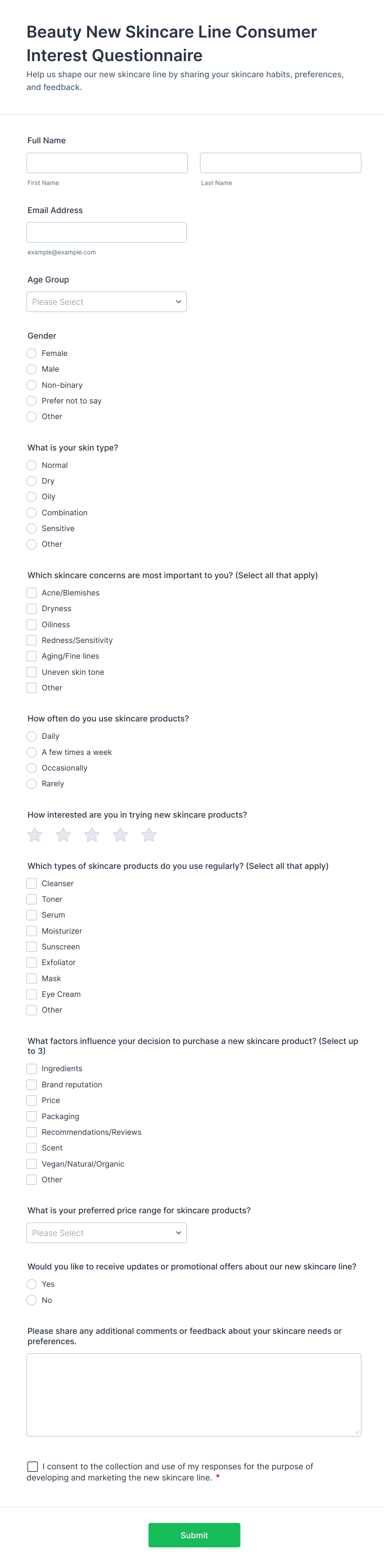 Skin Care Product Feedback Form