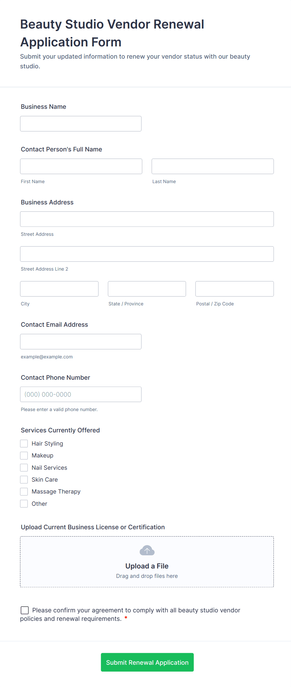 - Embed the form directly on your vendor registration page if needed.