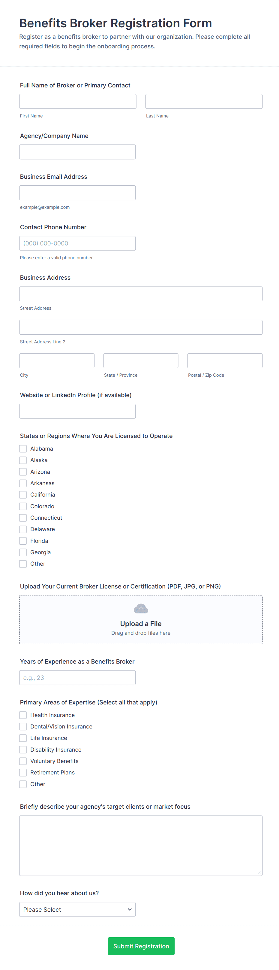 A broker form is a digital document used by brokers to collect, process, and manage information related to clients, transactions, properties, or policies. It streamlines data intake and ensures compliance with industry standards.
