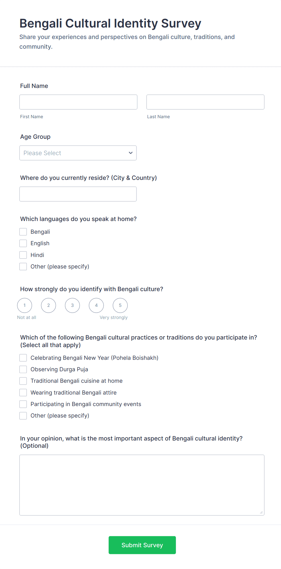 • Content and fields differ based on the objective: e.g., a health screening questionnaire may include medical history and symptom checklists, while a customer feedback form focuses on satisfaction ratings and open-ended comments.