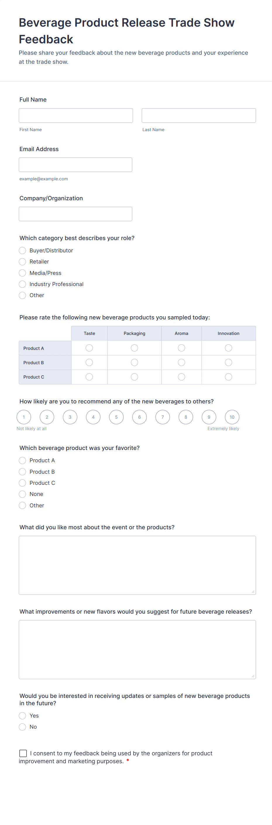 Event Feedback Forms are versatile and can be adapted to suit a variety of event types and organizational needs. Their primary function is to help event organizers gather honest, actionable feedback to improve future events and measure attendee satisfaction. Here’s how they can be used in different scenarios: