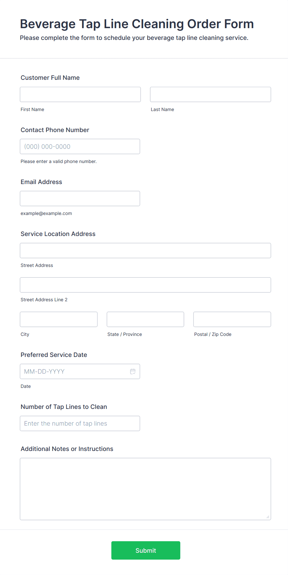• For catering or wholesale forms, include fields for event details, business information, or recurring order preferences.