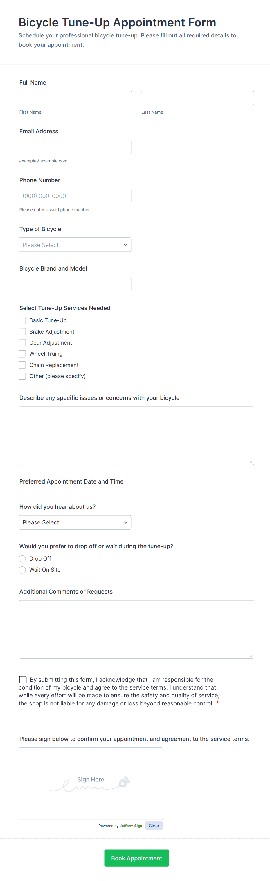 Service Booking Forms are essential for any business or organization that relies on scheduled interactions with clients or customers. Their flexibility allows them to address a variety of needs and solve common scheduling challenges. Here’s how they can be used and customized: