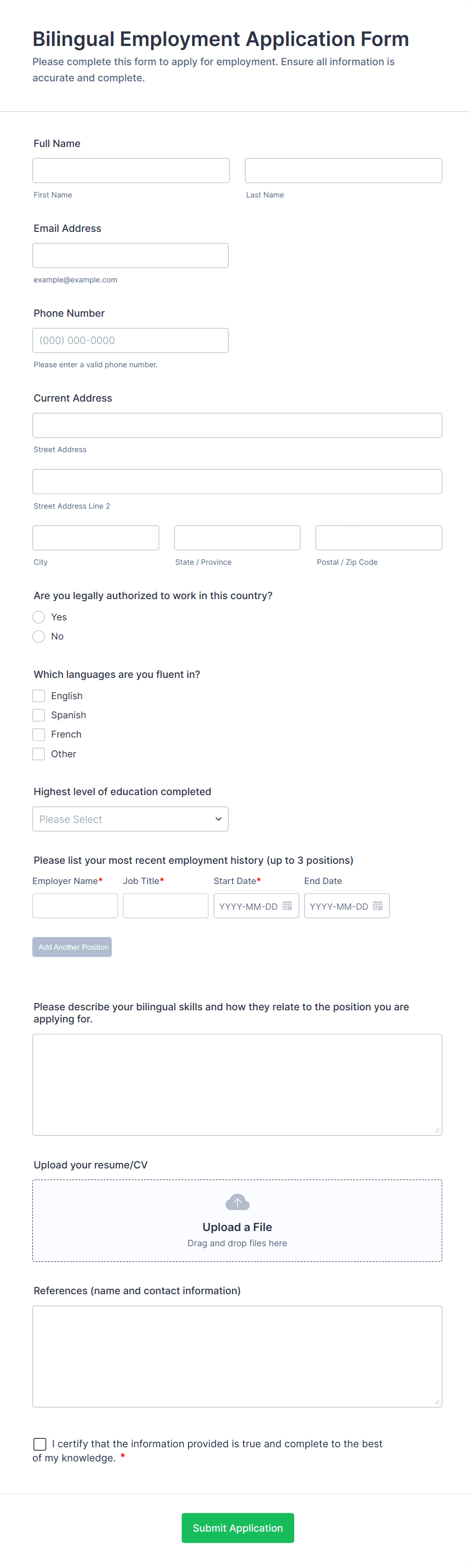 Employment Application Form